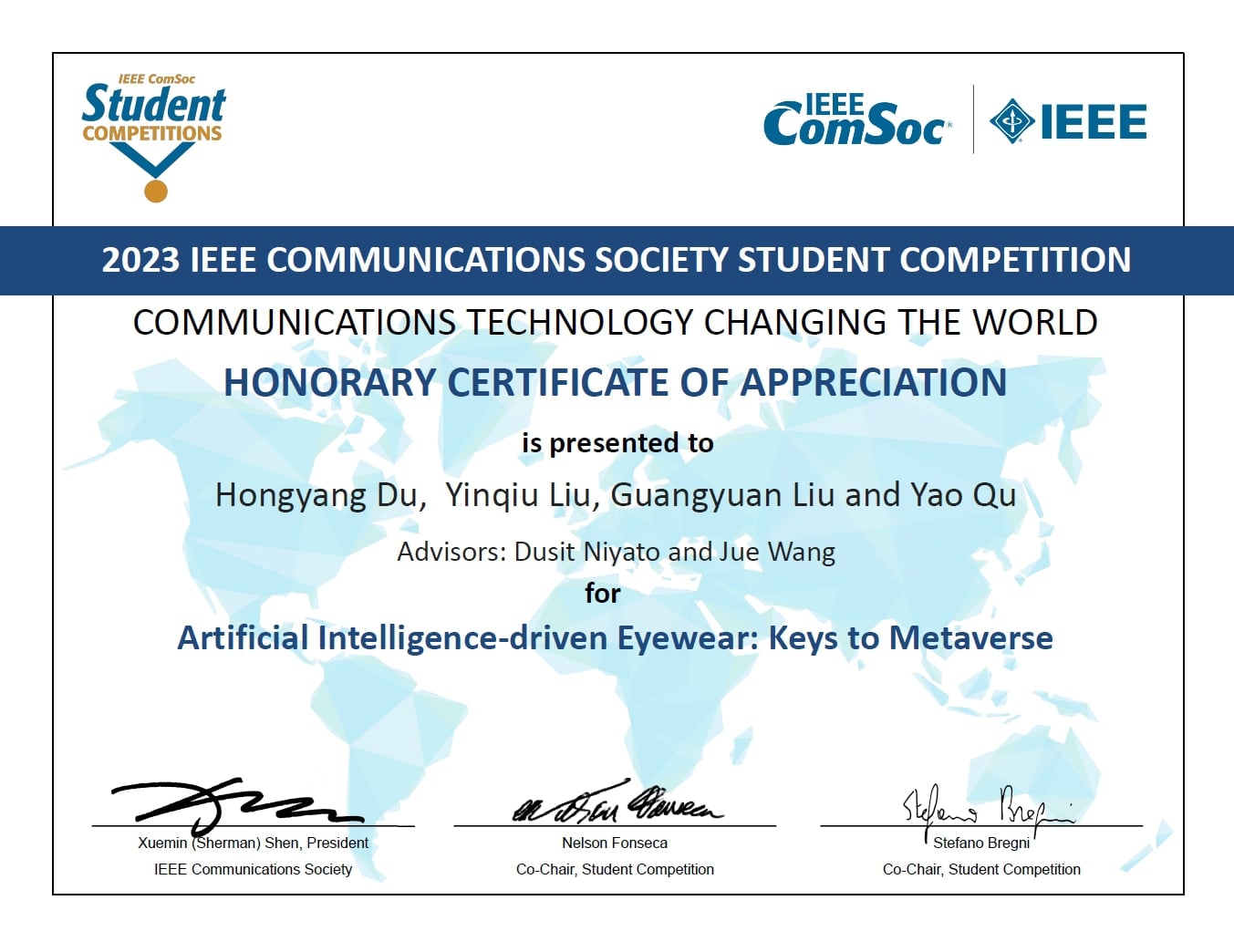 Honorary Mention Award, 2023 IEEE ComSoc Student Competition